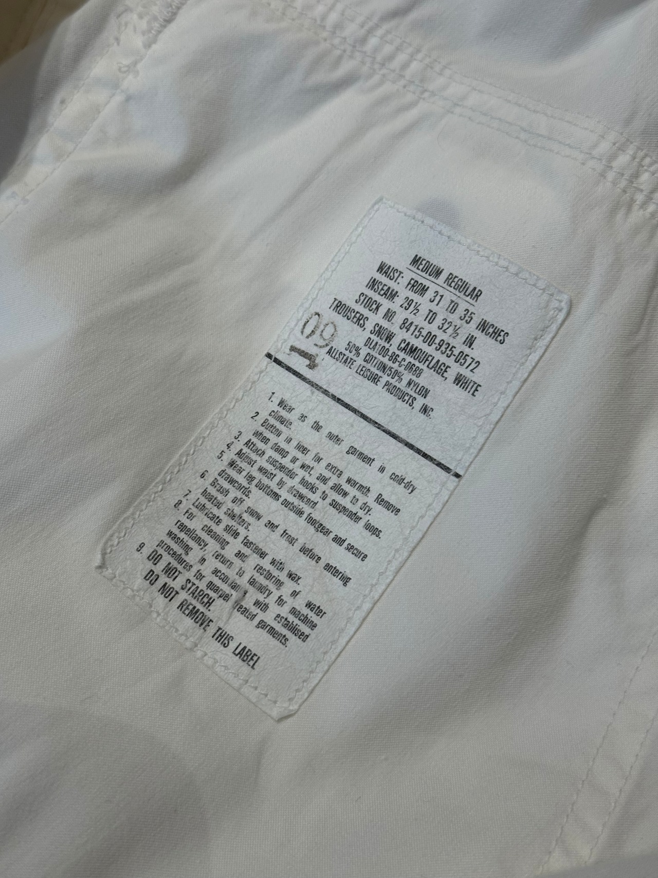 1980's U.S.ARMY Snow Camouflage Over Pants SIZE : MEDIUM - REGULAR