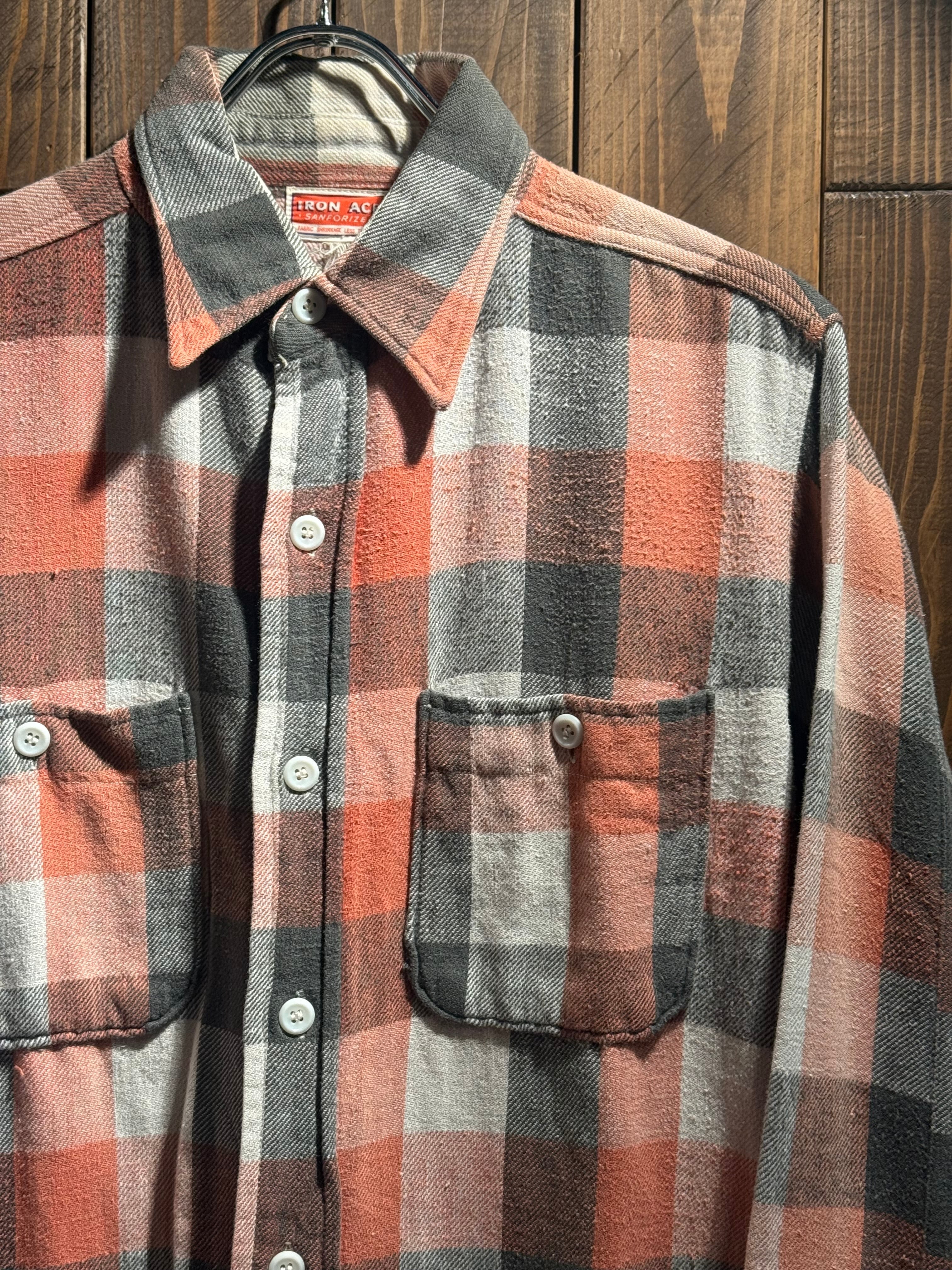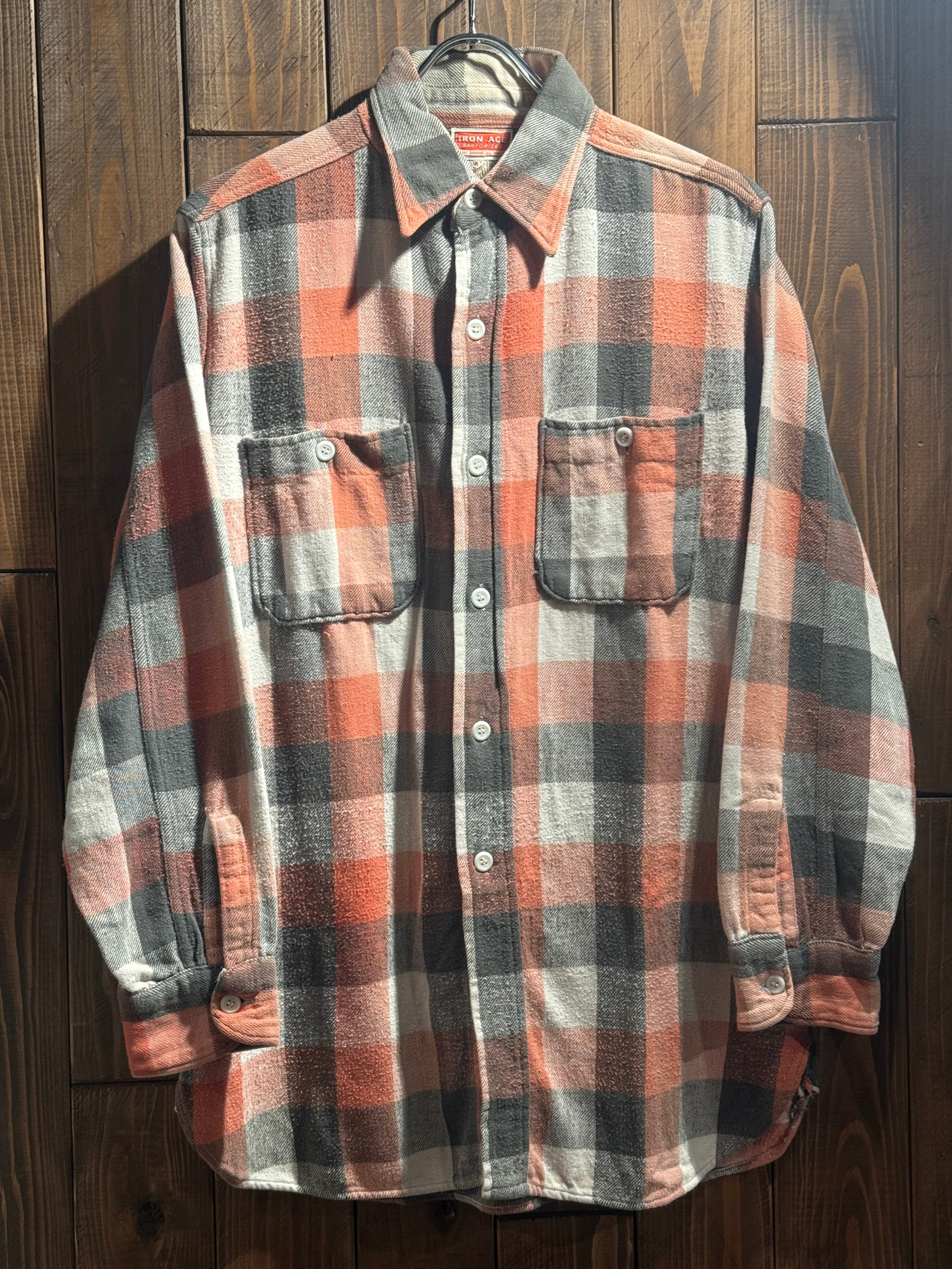1960's IRON ACE FLANNEL SHIRT WITH GUSSET SIZE : M