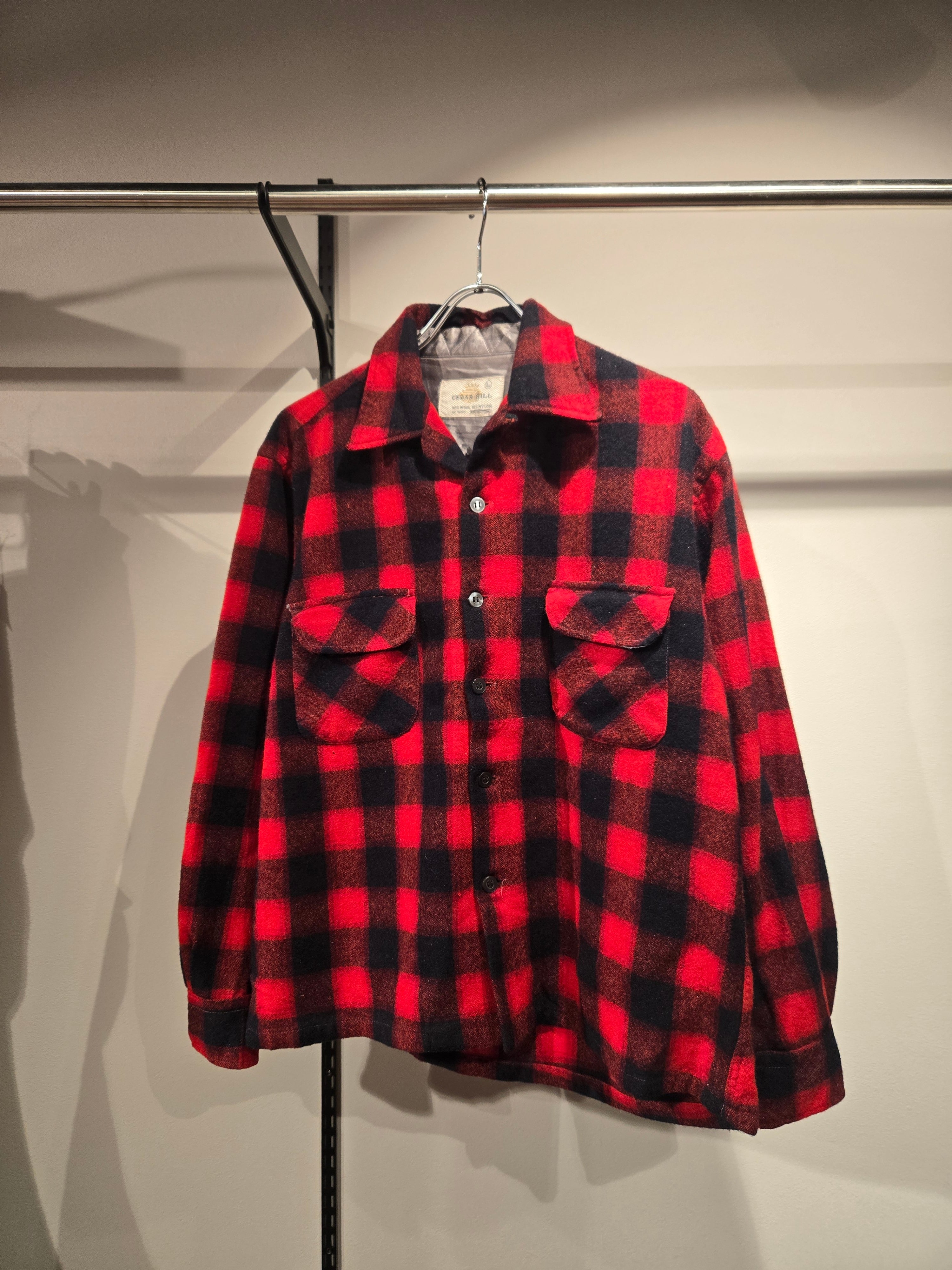 1960's CEDAR HILL Wool Plaid Shirt SIZE : L