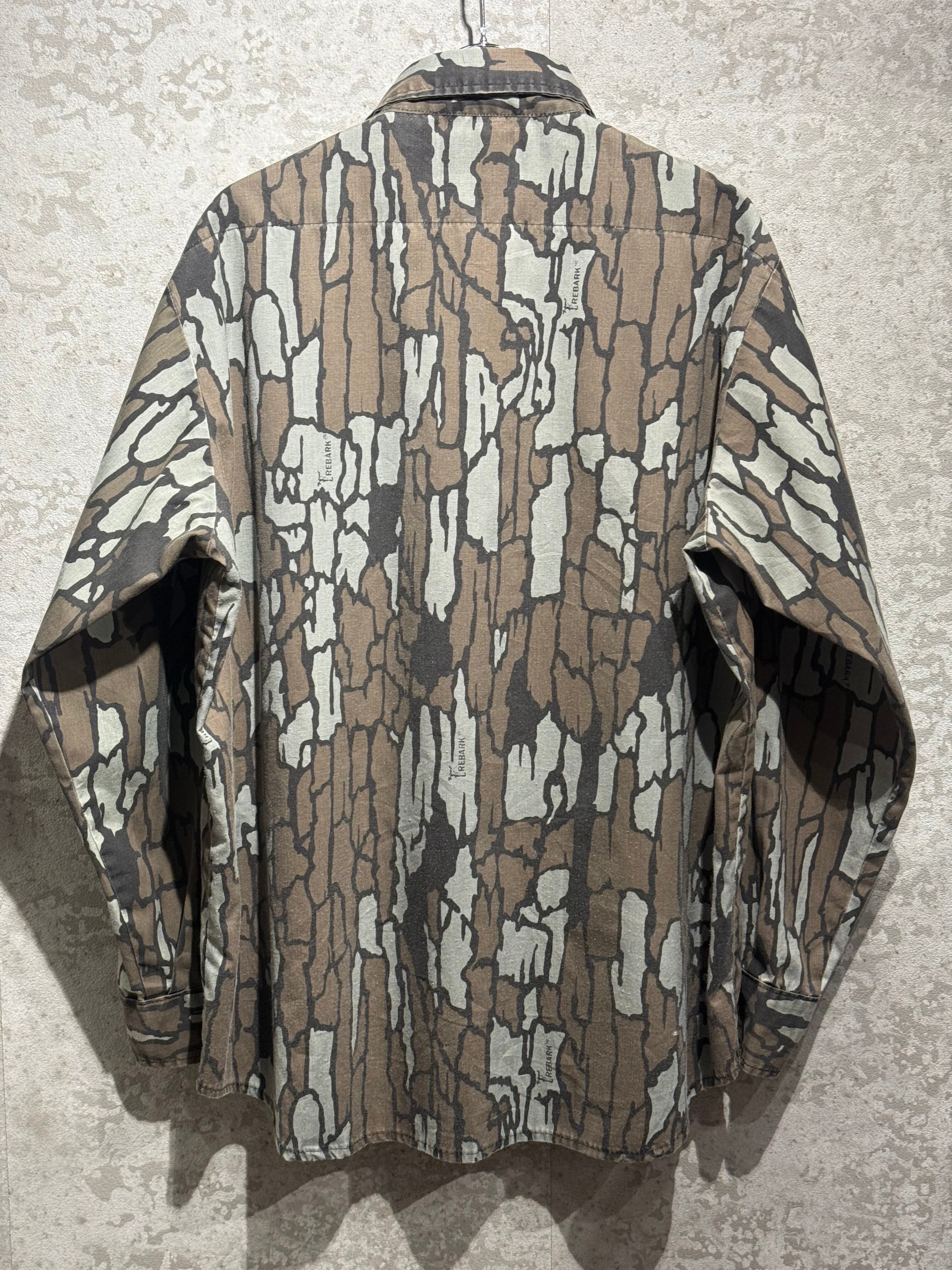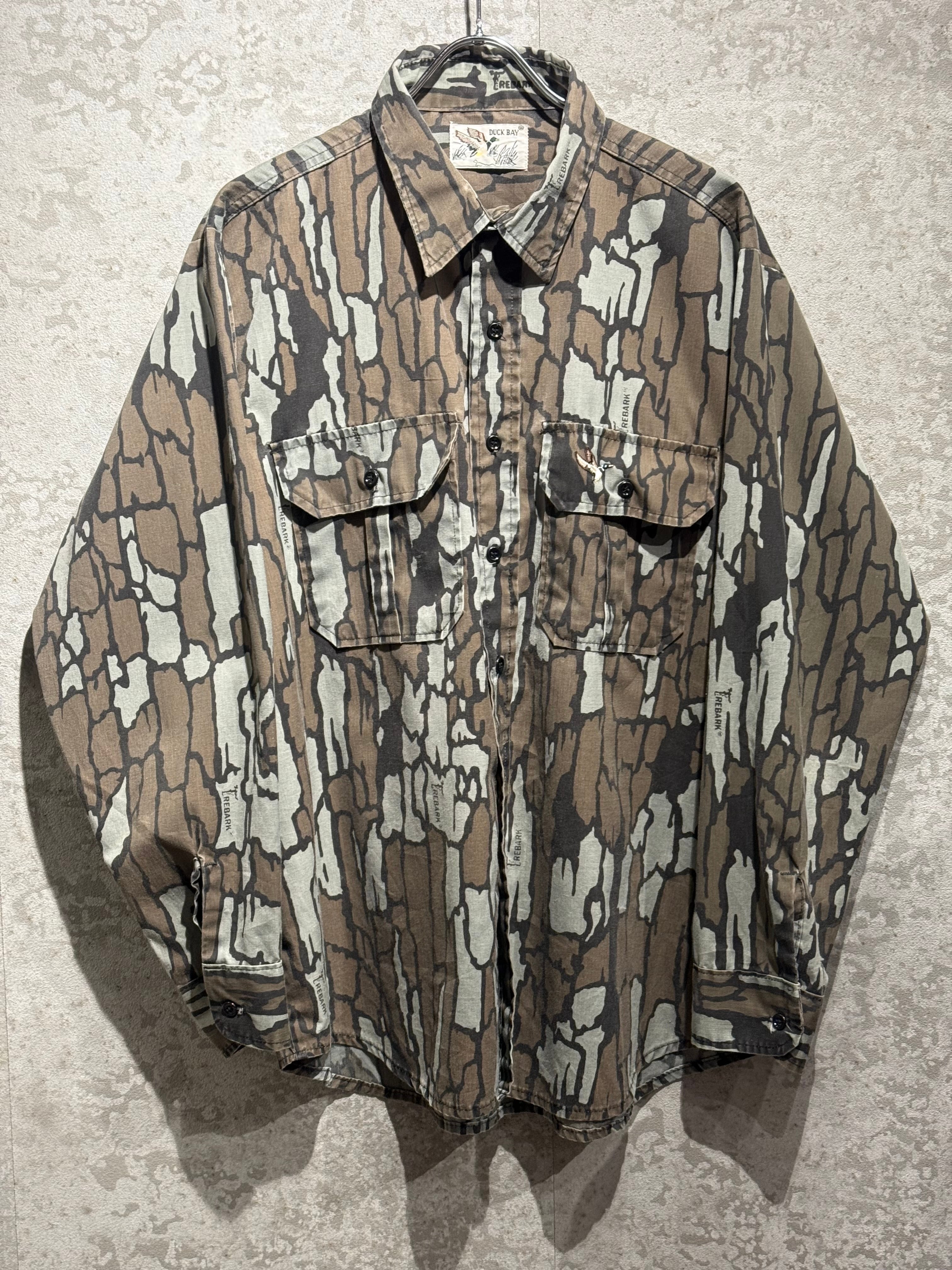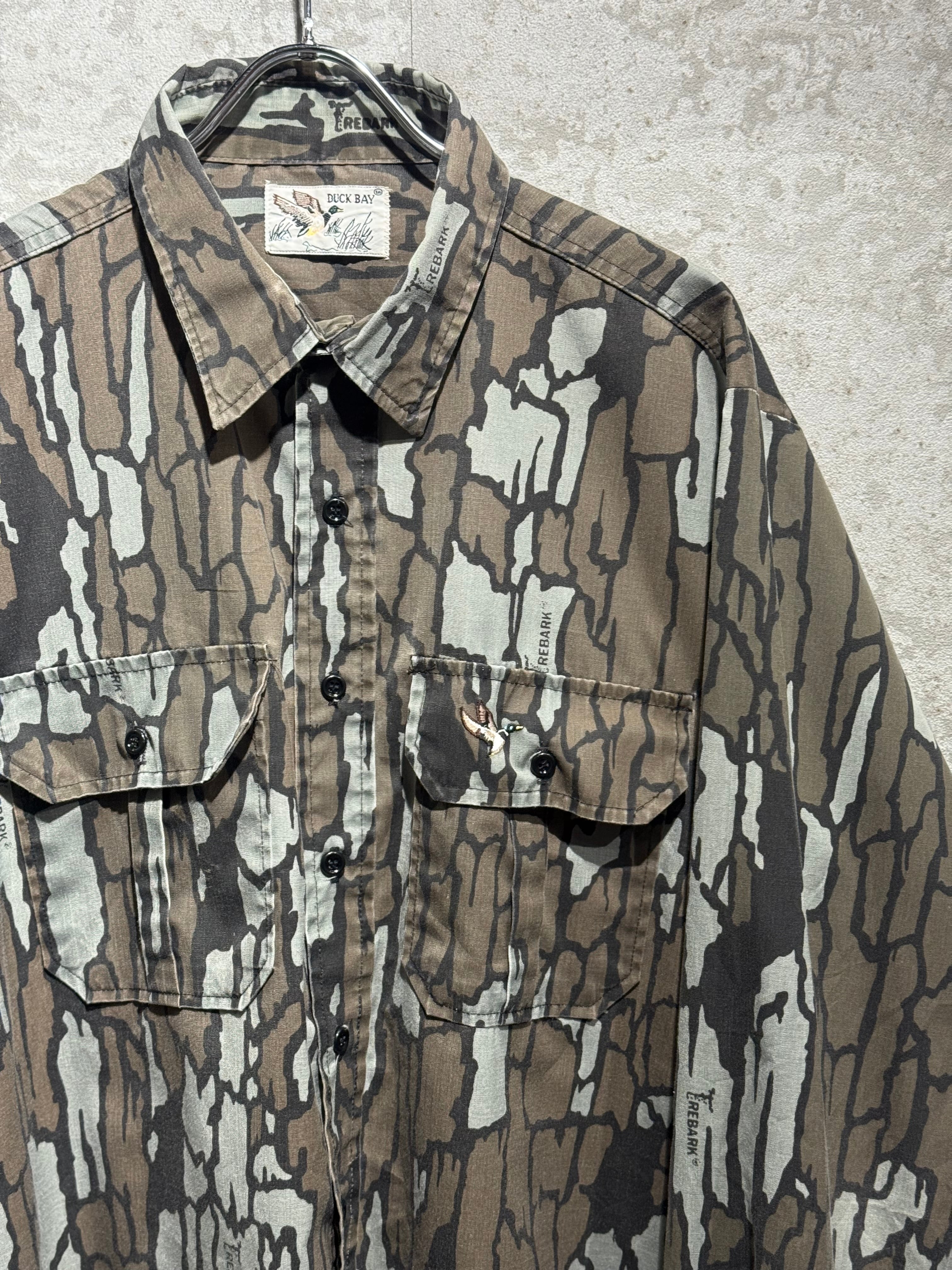 1980's DUCK BAY L/S POLYESTER SHIRT TREBARK CAMOUFLAGE PATTERN SIZE : L