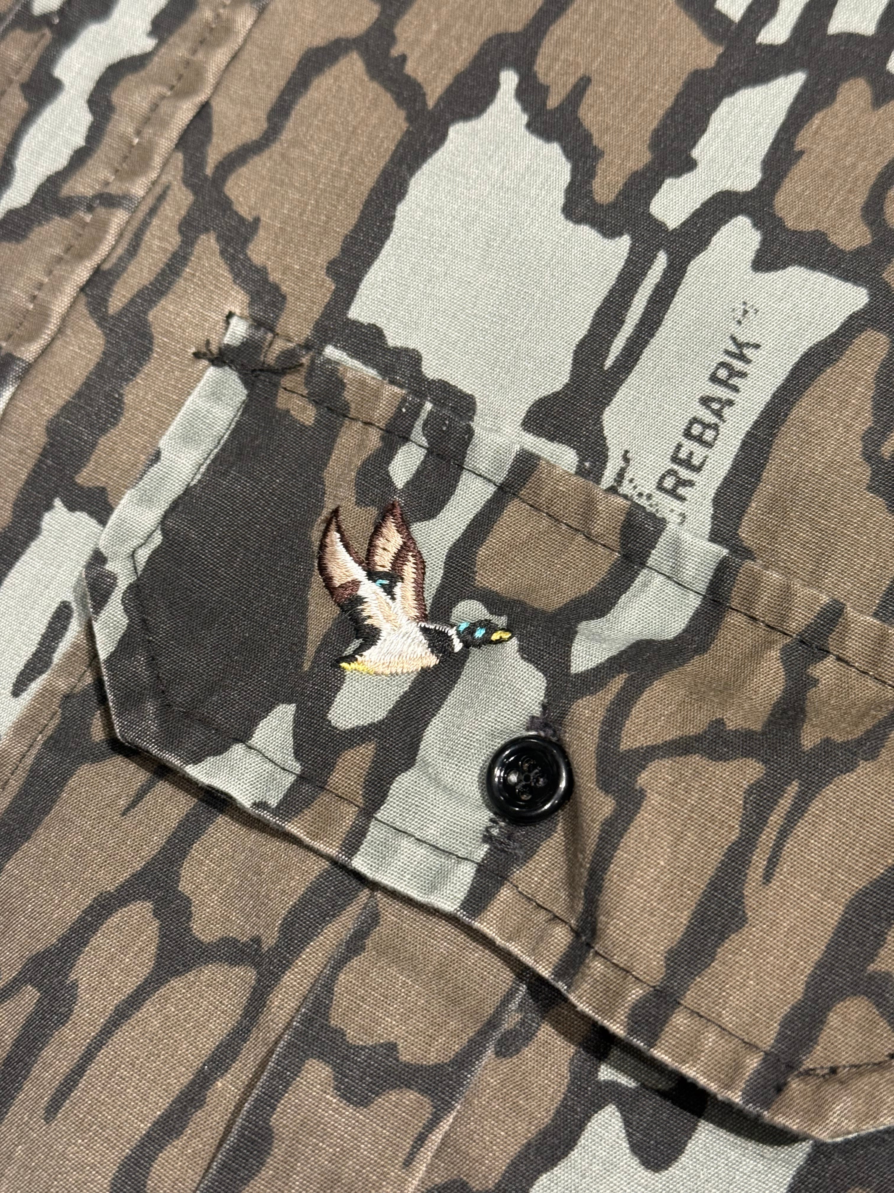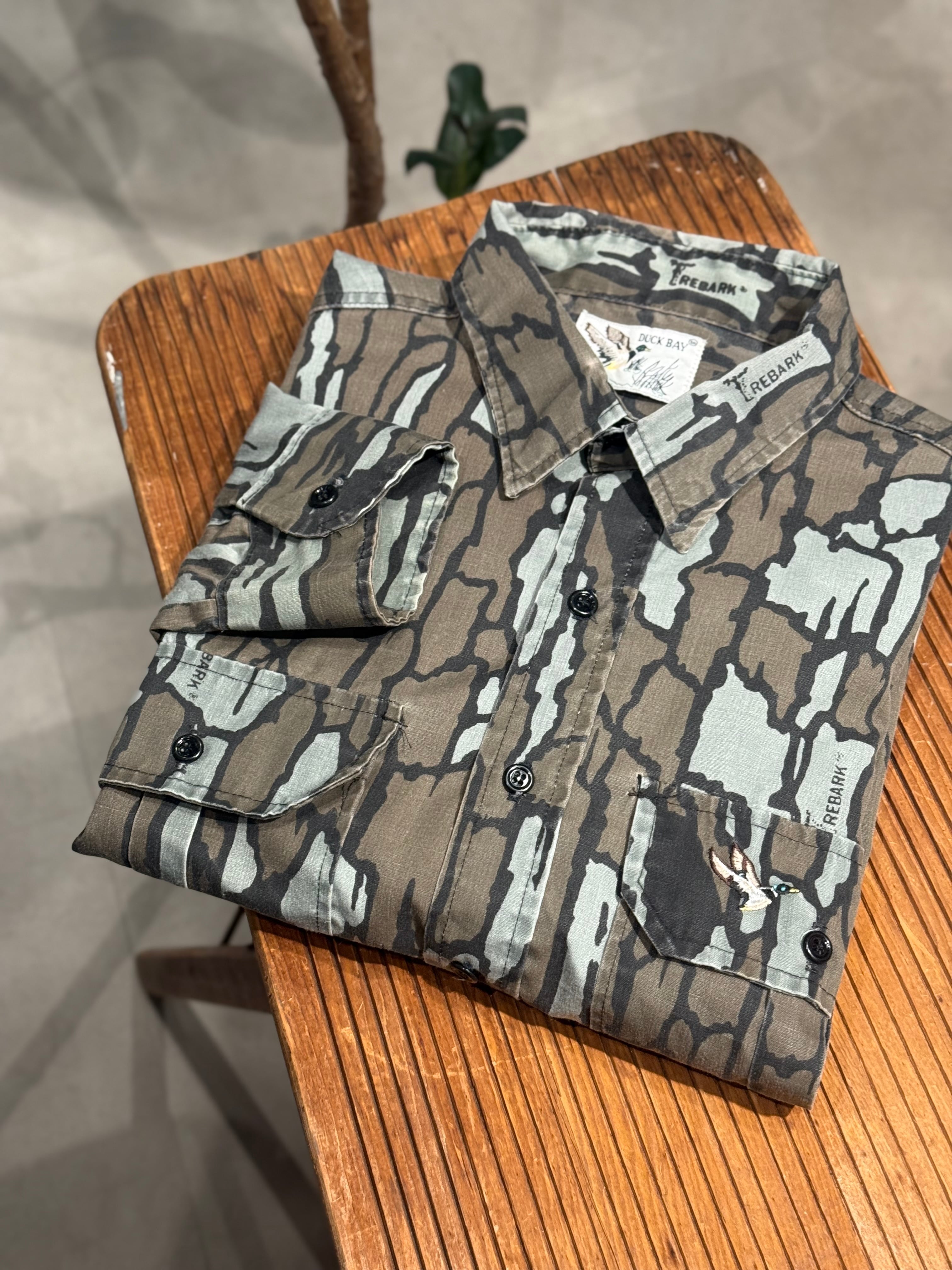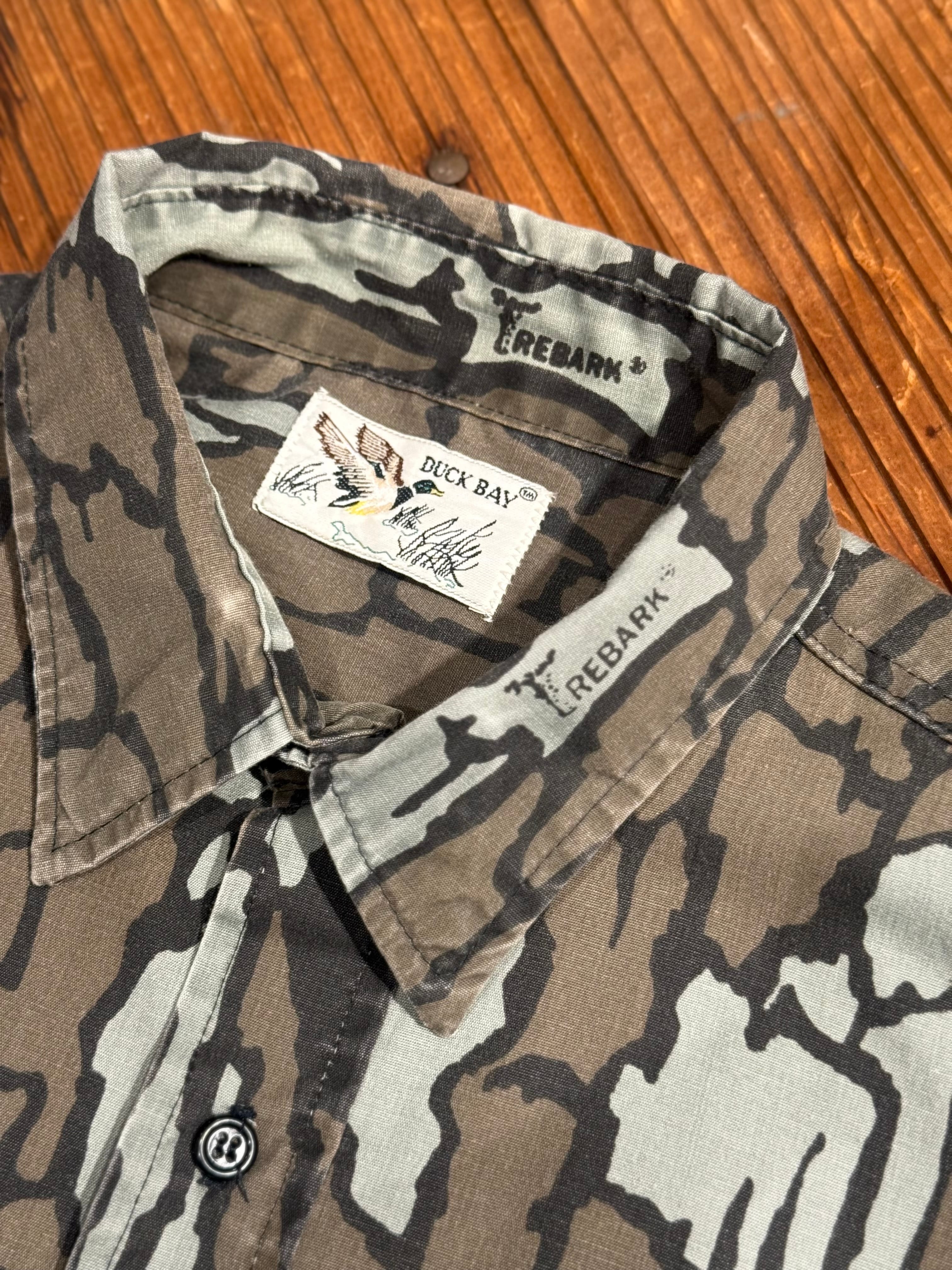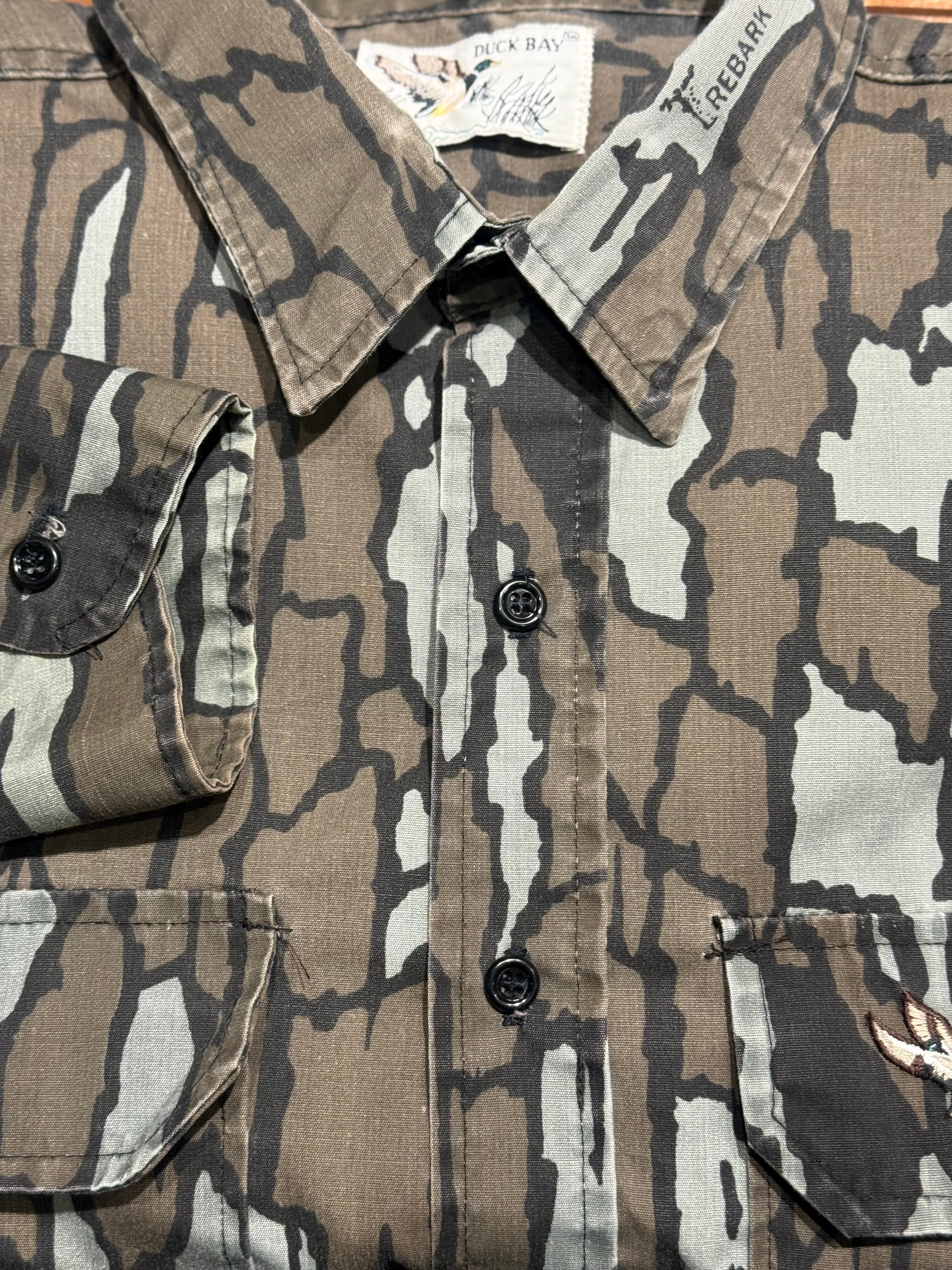 1980's DUCK BAY L/S POLYESTER SHIRT TREBARK CAMOUFLAGE PATTERN SIZE : L