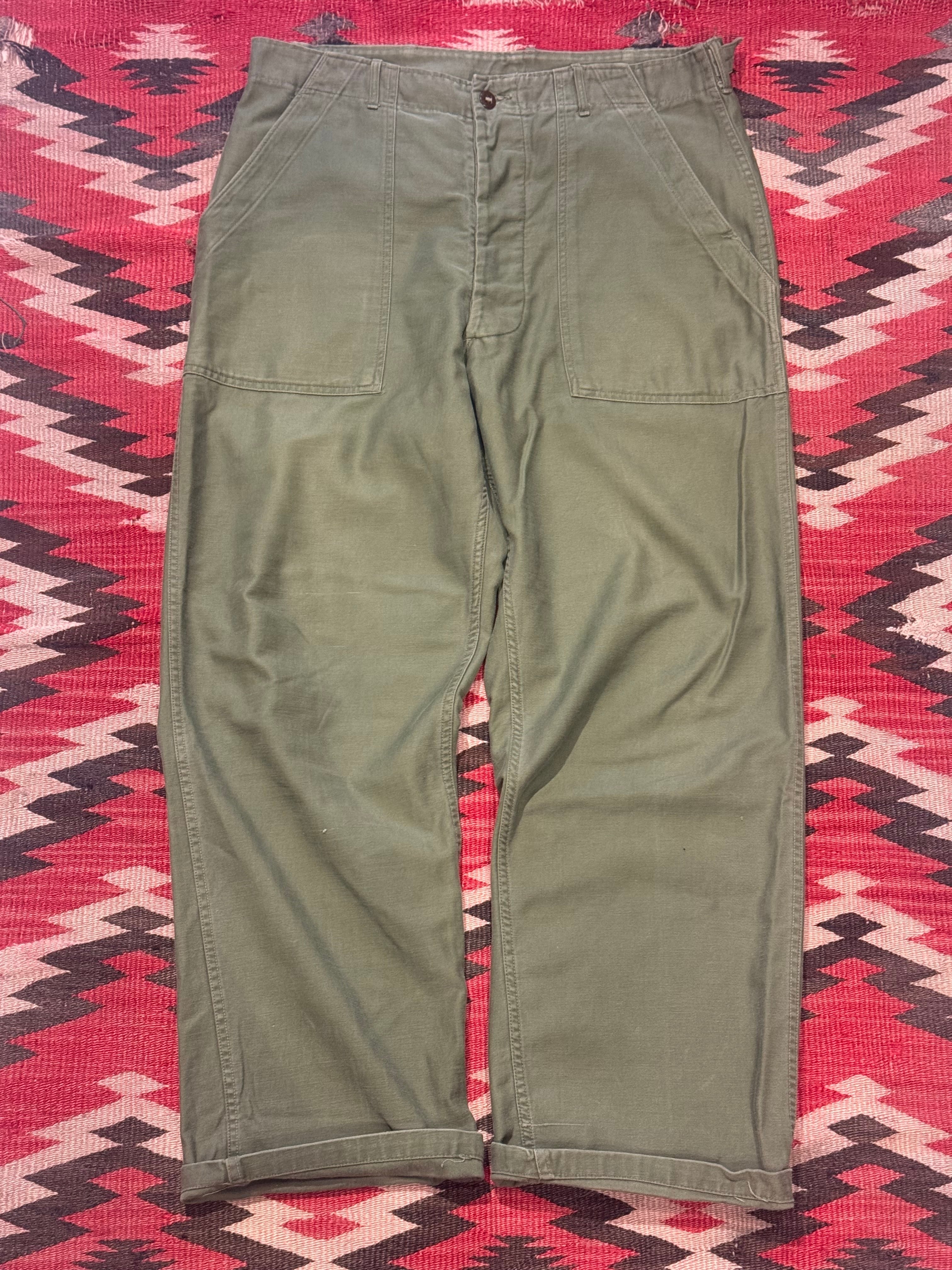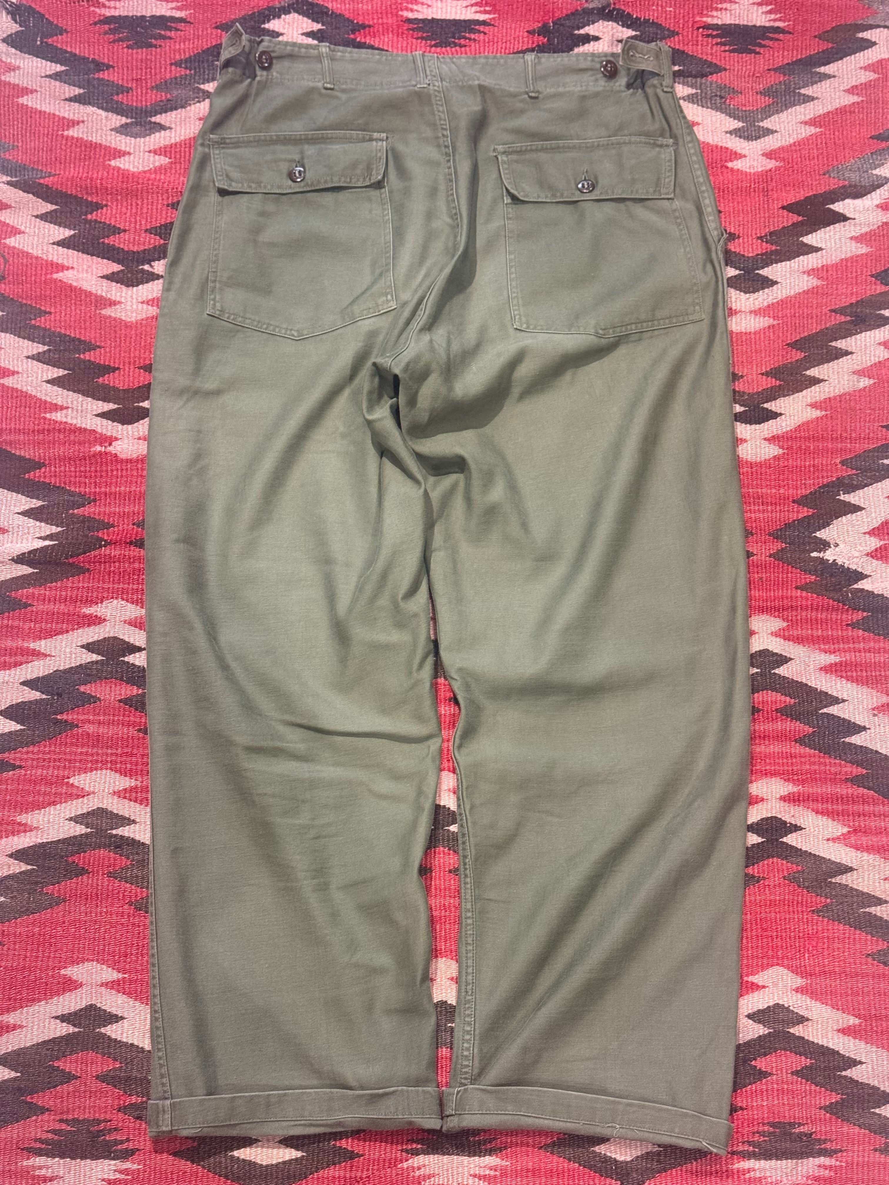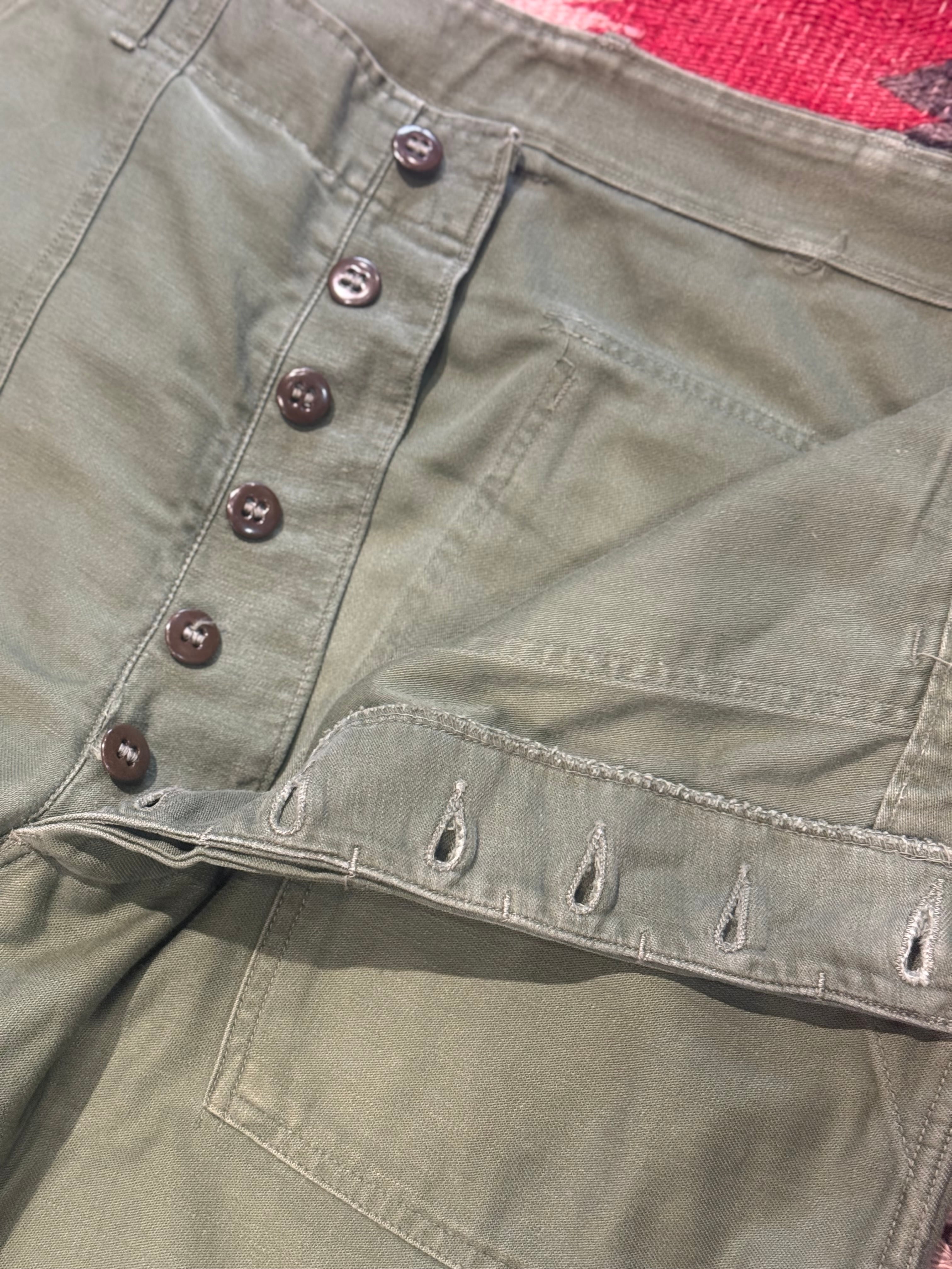 1950's~ U.S.MILITARY COTTON SATEEN UTILITY PANTS WITH SIDE ADJUSTER SIZE : W36 L29.5
