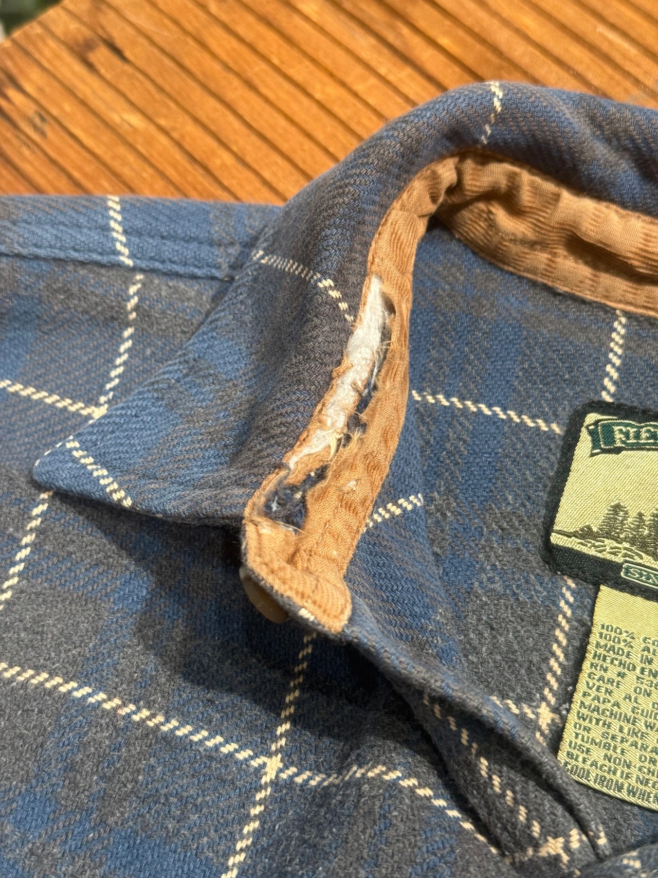 襟裏コーデュロイ部分に破れ。