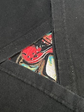黒ボディに赤やブルーのプリントがよく映えます◎